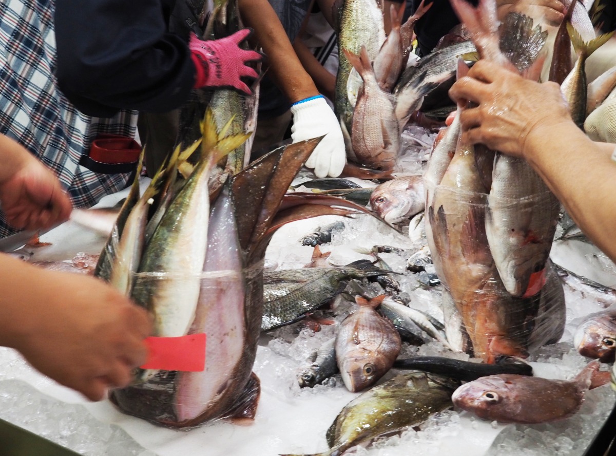 直売所では、新鮮な野菜やフルーツ、そして、笠岡といえば海の幸! 水産物コーナーが充実しています。