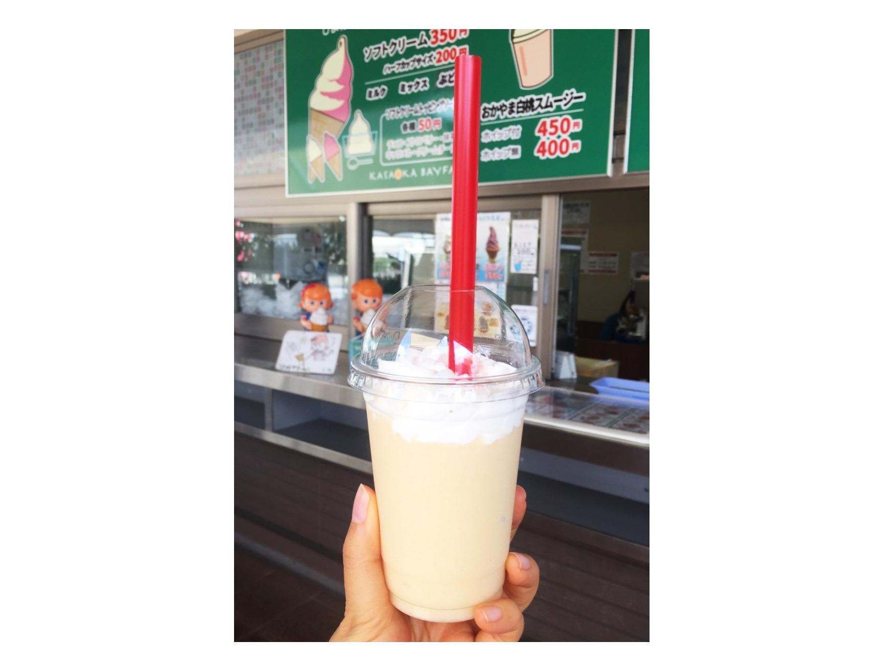 私は季節限定の「おかやま白桃スムージー」を注文してみました。桃の味がしっかりしていて、ひんやりと美味!
