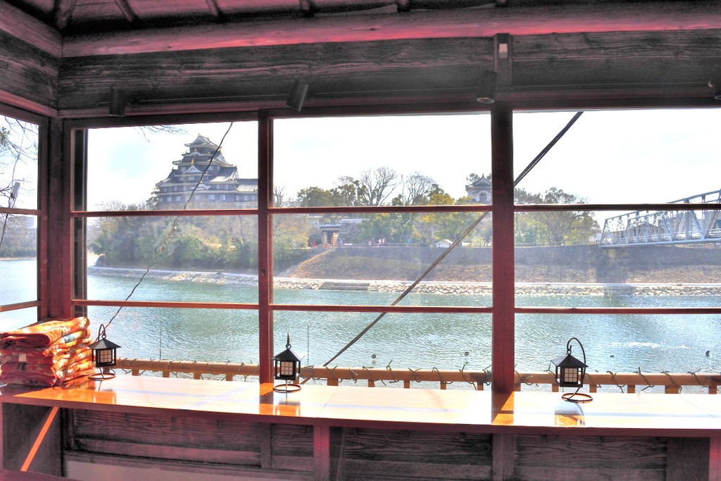 烏城のためにあるかのような水辺のカフェで、揚げたてきびだんごに抹茶ラテ、地ビールはいかがですか? ドリンクやフードがボートに持ち込みOKなんて!乗る前からもワクワクします。