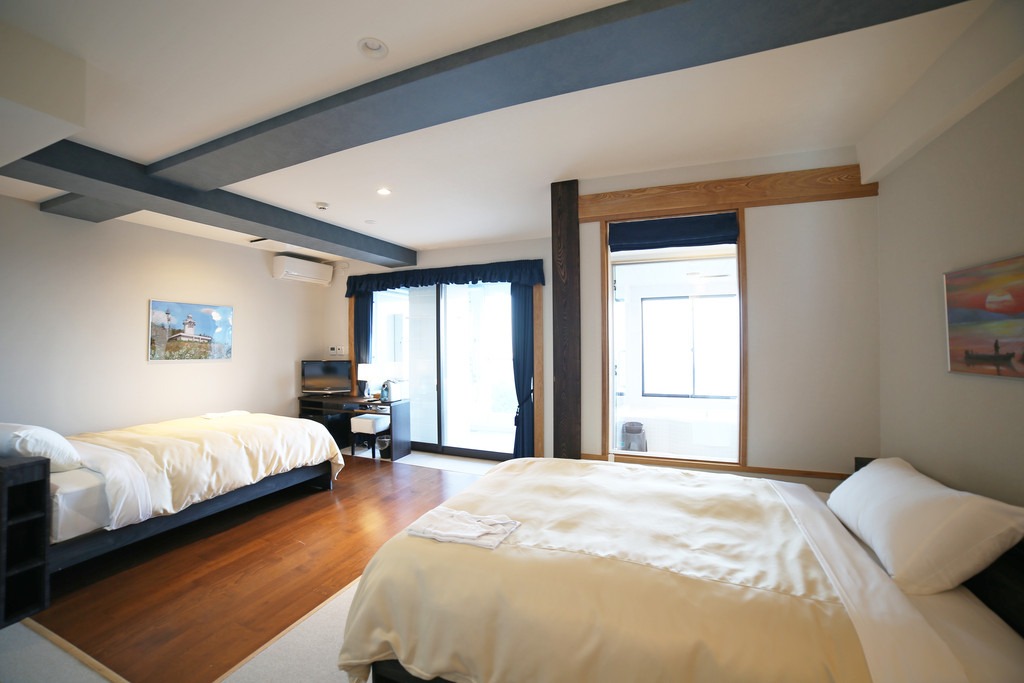窓が大きく、広々としたお部屋。瀬戸内の風を感じることができます。