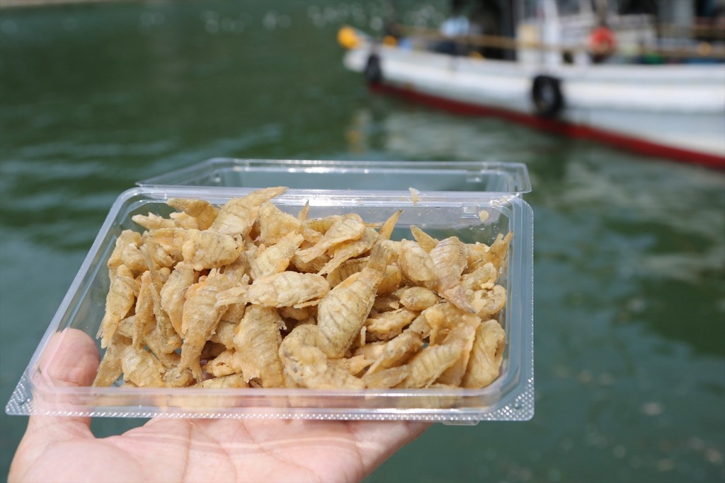 春から夏にかけてよく獲れる小魚。標準和名はテンジクダイ。イシモチと呼ぶ地方もある。頭部にある耳石(じせき)という石のような骨が他の魚より大きいため、頭を落として調理する。から揚げにして、骨ごと食べるとほのかな甘みも感じられ、酒のつまみとして居酒屋などでも人気が高い。