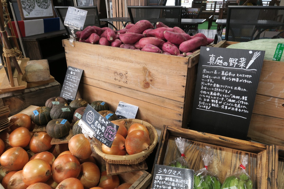 できるだけ農薬を使わない新鮮な野菜や果物がお手ごろ価格で並びます。もちろん旬も逃さずに!季節のおいしいものを求めて、地元民や観光客も訪れます。郷土愛が詰まった手書きポップにもご注目!