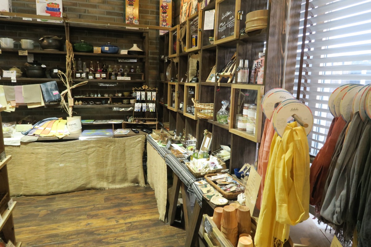 真庭を中心とした岡山県内の手仕事もズラリ。クロモジのアクセサリーや天然素材の石鹸など、お土産としても人気がありますよ。