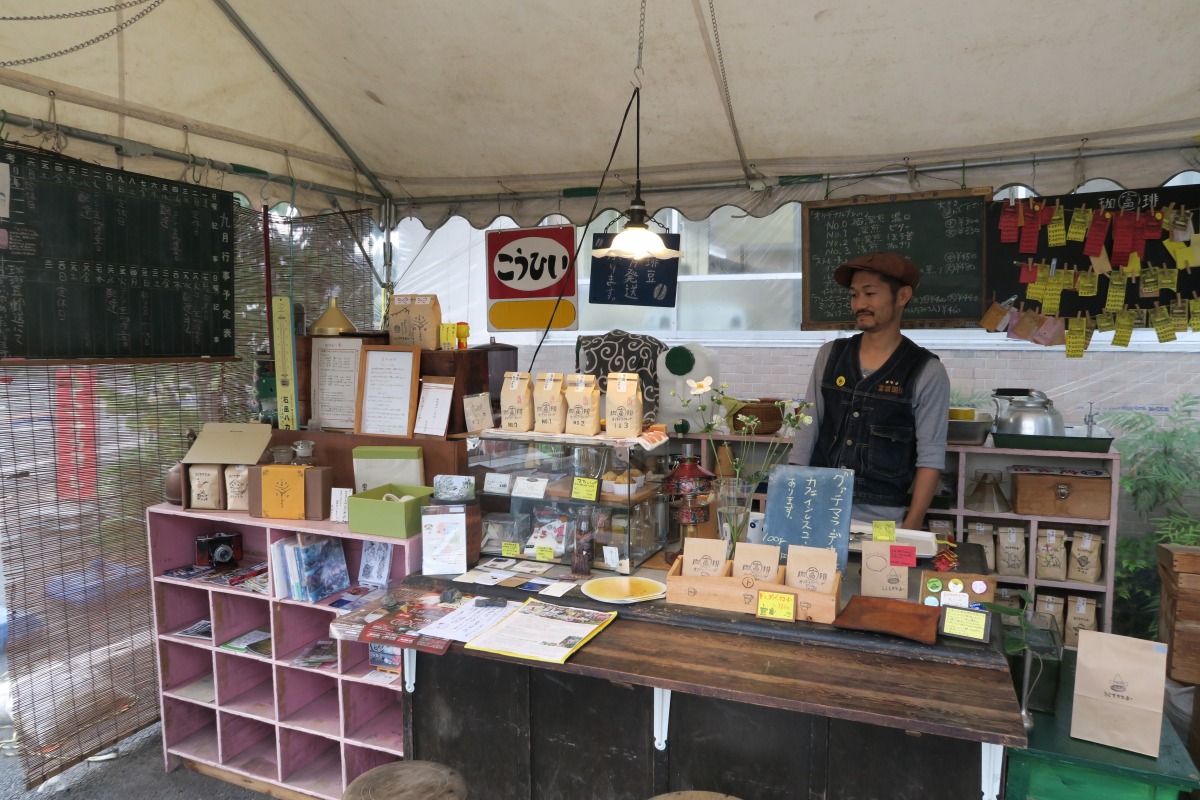 敷地内にある、地元の常連さんから観光客まで集まる憩いの場。店主が入れる自家焙煎のコーヒーは、コーヒーが苦手だけどこれから好きになりたい方にもぜひ飲んでもらいたいという思いがこもったこだわりの一杯。写真のようなテントのお店は10月上旬までの予定。開放的な空間でコーヒーを味わいたい方は急いで!