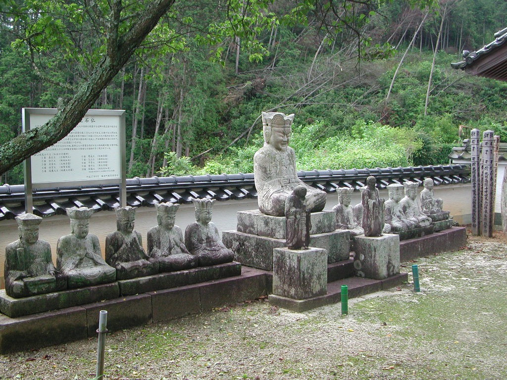 山上の林道沿いに小さな石の観音像が並んでいます。石仏は紀伊国那智山紀三井寺から、奈良、大阪、京都、滋賀、兵庫など西国三十三の寺にゆかりのもので、それぞれ寺の名が刻まれており、観音霊場として参拝ができます。終点には金光坊という山寺があり、那岐山を望むことができます。