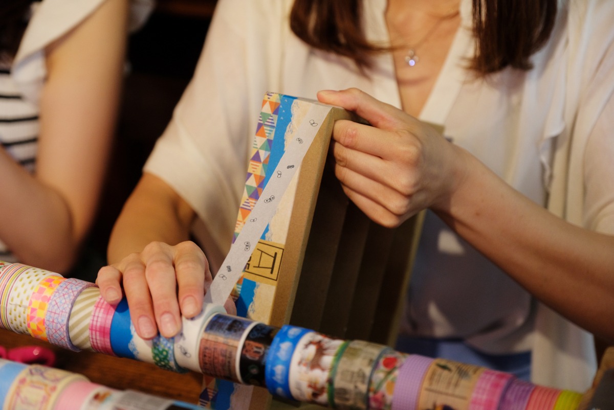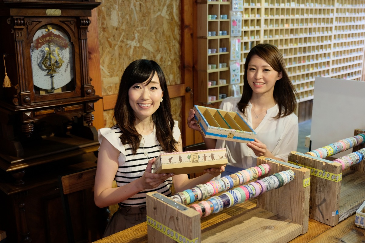 古民家を改装したショップで、可愛いマスキングテープに囲まれて手作り体験が楽しめます。色柄ともにバラエティー豊かなカモ井加工紙のマスキングテープ「mt」でデコレーションしてオリジナル収納BOXが作れます。