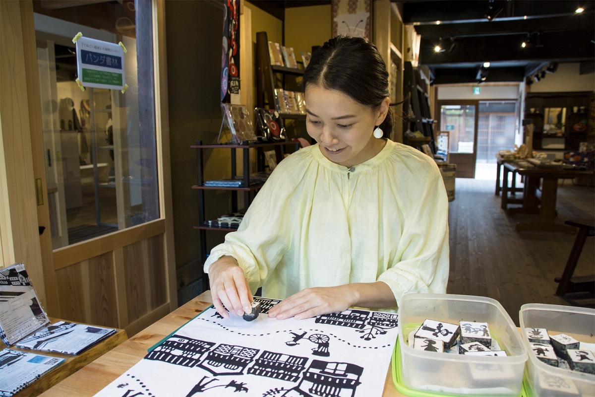 倉敷のモノづくりや日本の伝統文化を体験・発信する複合施設、「クラシキクラフトワークビレッジ」内の「くらし器てぬぐい Gocha」では、倉敷美観地区が描かれた手ぬぐいに文字や動物、日付などのスタンプを押してオンリーワンの一枚が作れます。
