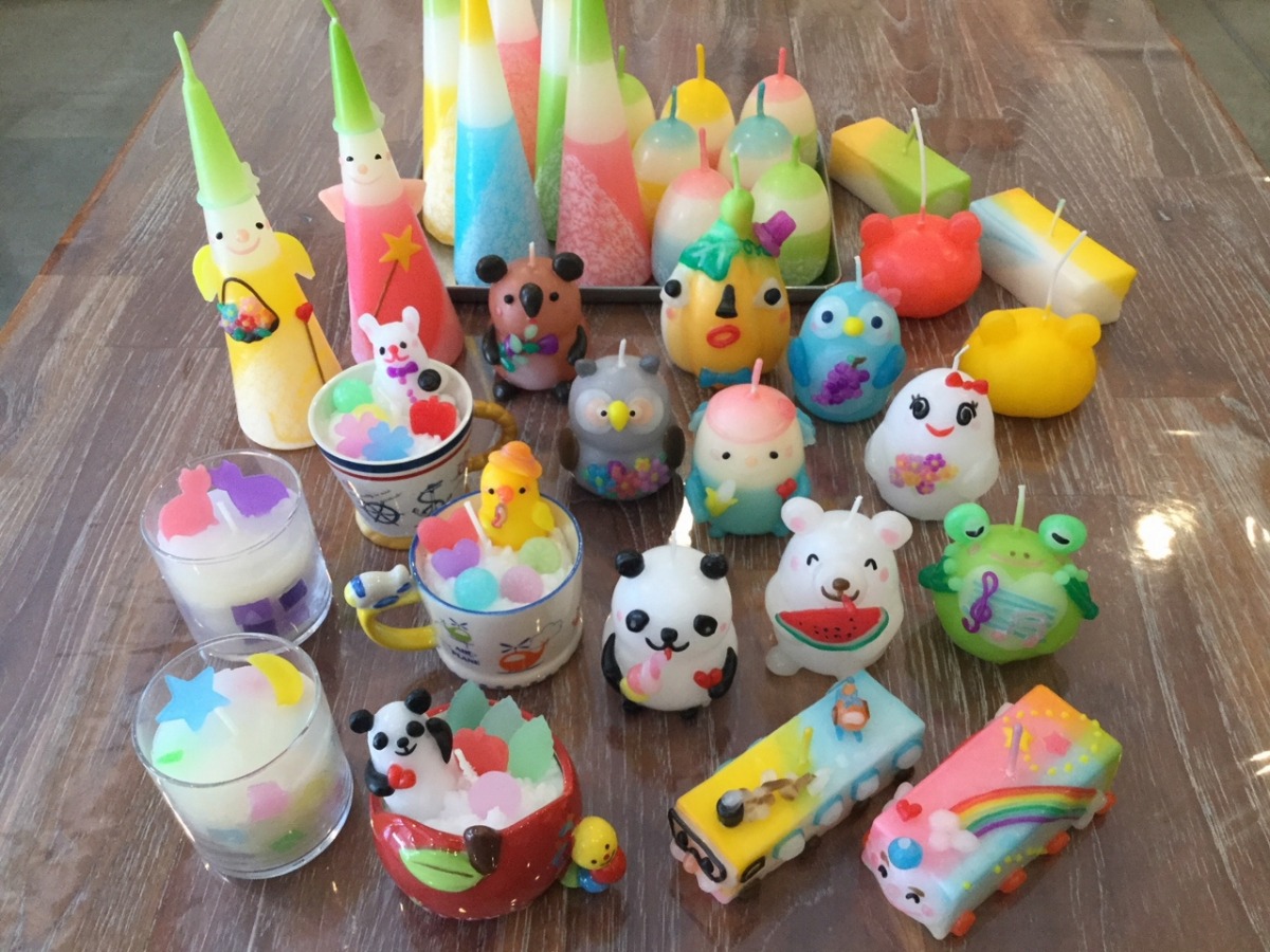 約200種類ものキャンドルが出迎えてくれる、古民家を改修したキャンドルショップ。子どもから大人まで誰でも手軽に楽しめる手作り体験が人気です。アロマモザイクグラスキャンドルやDECOパフェキャンドル、季節のフィギュアキャンドルなどが作れます。