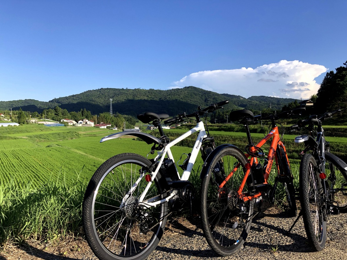 最新の電動クロスバイク(パナソニック製ハリヤ)がレンタルできるので、アップダウンが多くて普通の自転車では大変な中山間部の坂道も、軽快に走ることができます。