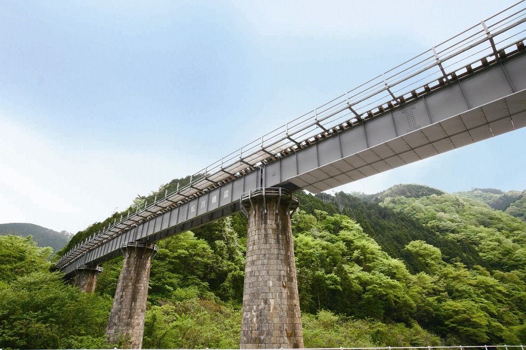 美作河井駅~知和駅間に架かる石造りの鉄橋で、その橋と、橋を通る列車との風景は鉄道ファンにとって絶好の撮影スポットです。