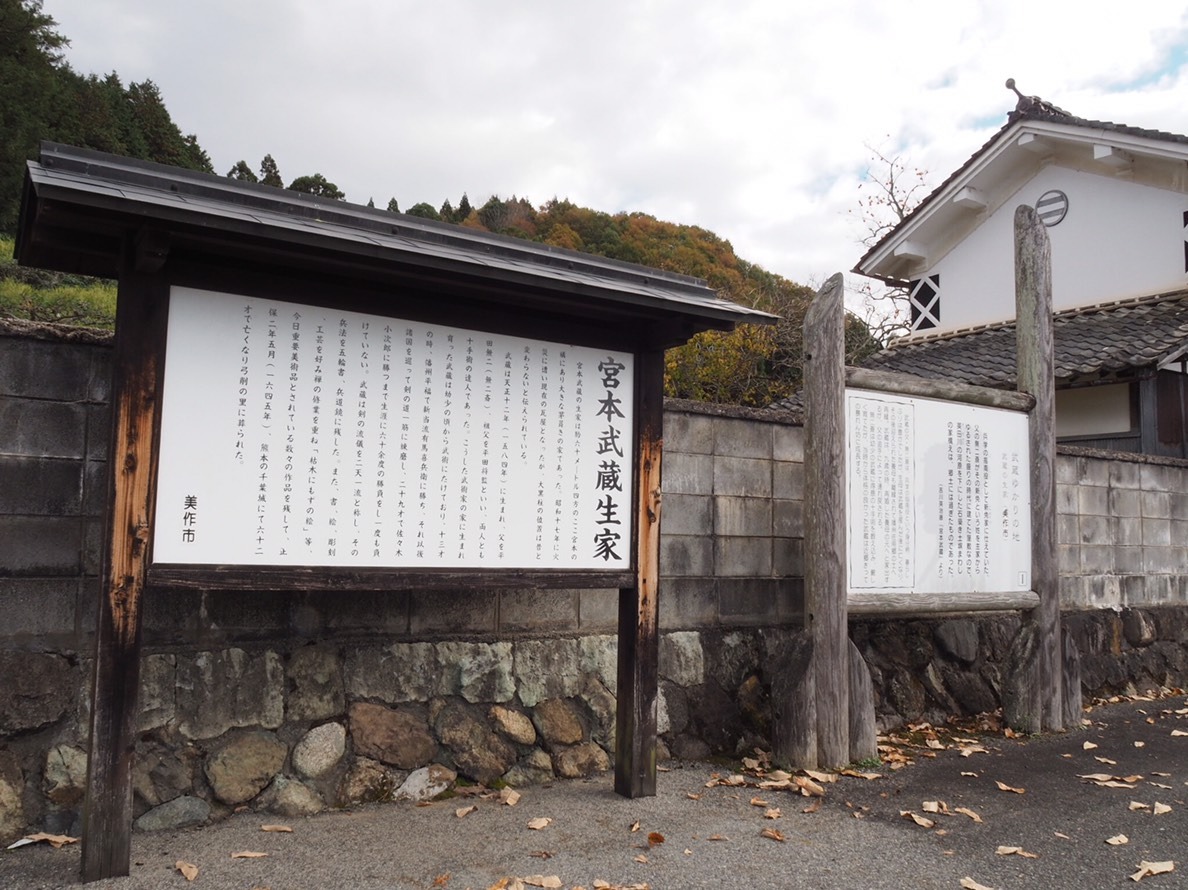 宮本武蔵は、岡山県美作市宮本で生まれ育ちました。淀橋から北へ行くと、「武蔵の里」として、生誕地が観光スポットになっています。