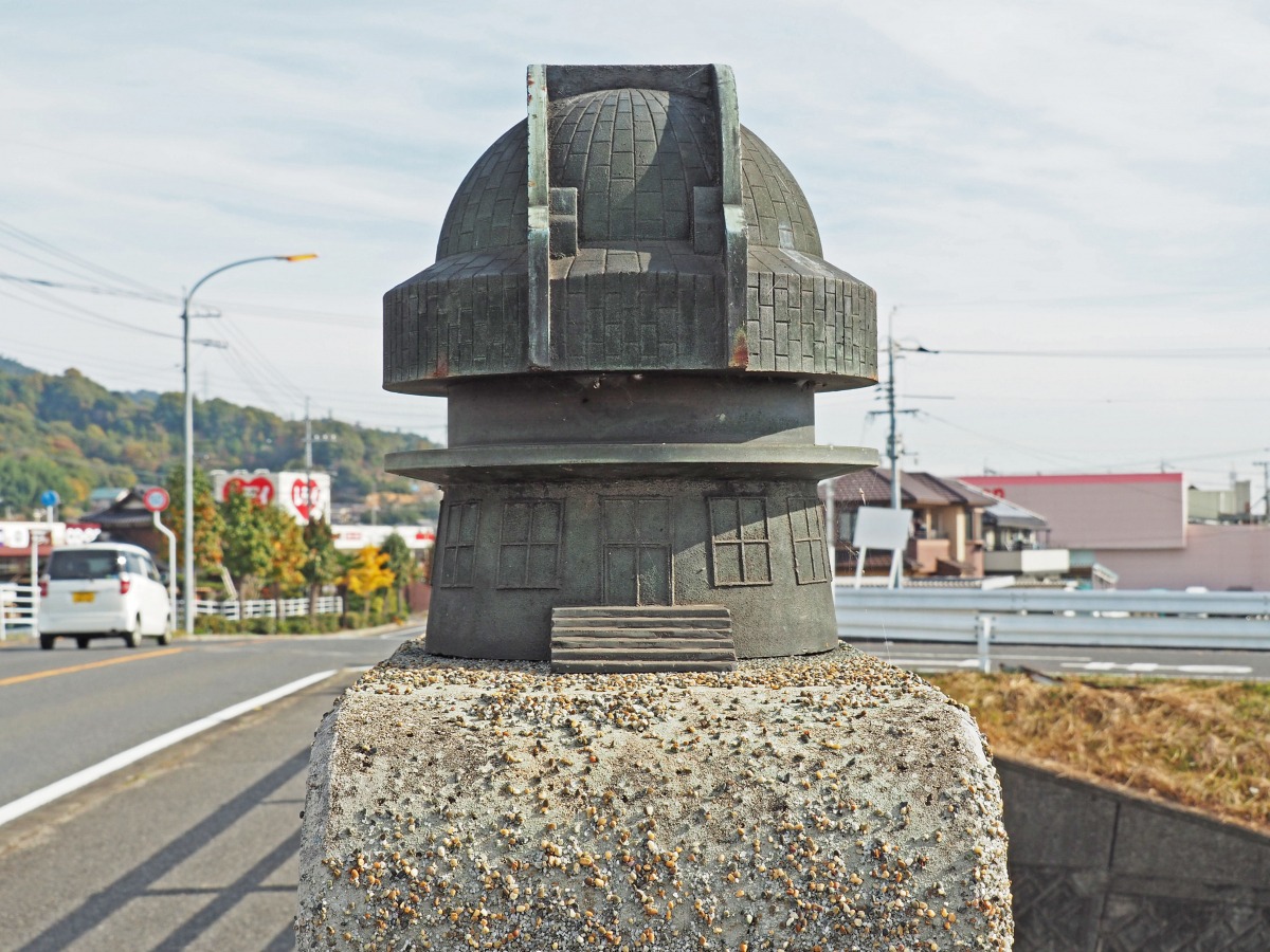 浅口市の新鴨方橋の欄干には、小さな天文台が乗っかっています。