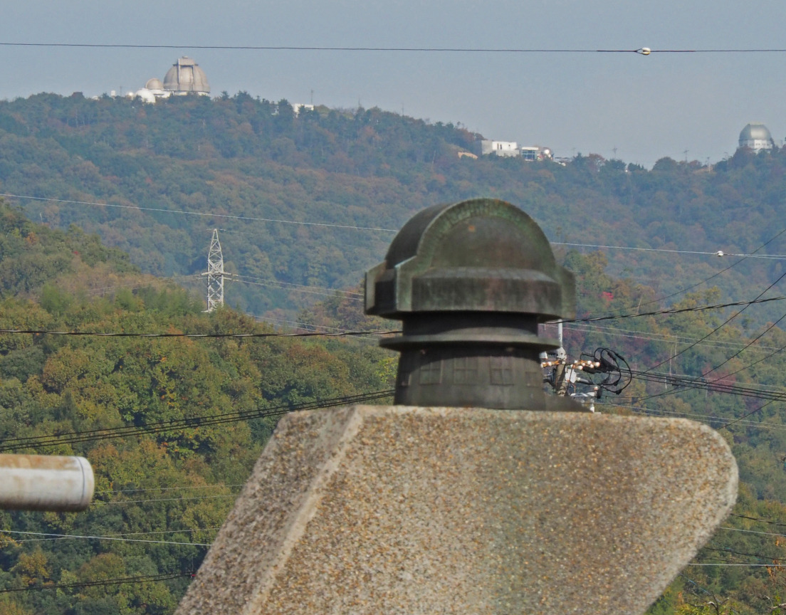 今では見える天文台は2つに。写真右側の新しい天文ドームには、日本一大きな3.8m天体望遠鏡「せいめい」が入っています。