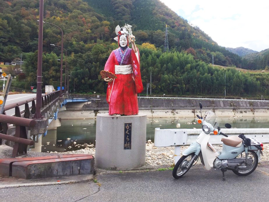 高梁市成羽は、備中神楽発祥の地です。かぐら橋には、備中神楽の登場人物が!