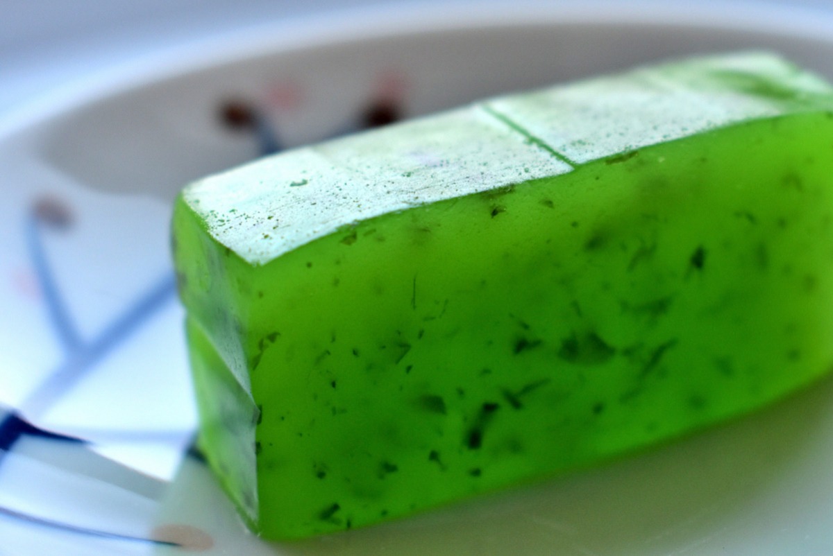 この透明感と鮮やかさ!昔ながらの手作りで製造されているなんてすごい職人技です。見た目のインパクトとは違ってお味はとってもまろやか。国産青のりの自然な風味が優しく広がる品のある美味しさです。