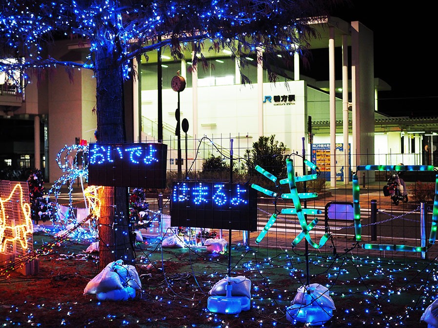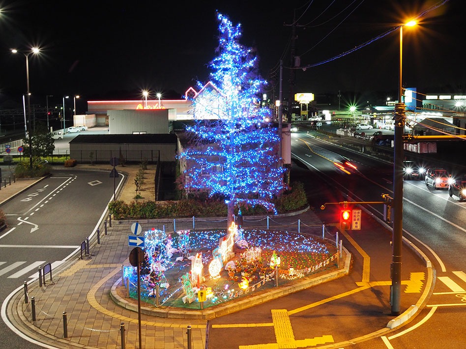 冬の恒例行事でしたが、今年からイルミネーションがパワーアップしているJR鴨方駅前。国道二号線沿いです。