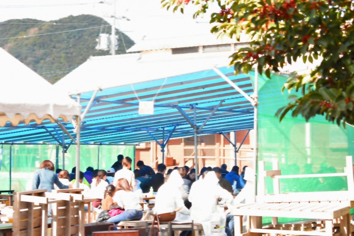 スペースも広々なので、家族連れもワイワイ!食材をカートで持ち込んだり、大きなサザエをじっくり焼いたり。皆さん自由に満喫されていました!