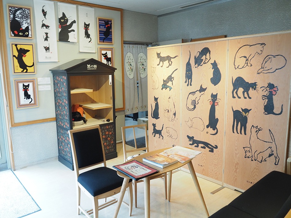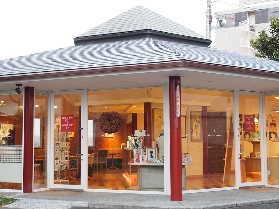 企画展や、大正ロマンにひたれるカフェ。ミュージアムショップにはオリジナルグッズが豊富で、夢二の乙女チックワールドにメロメロ! 夢二の絵にそっくりなお庭番ねこ、「黑の助」くんにも会えて感無量です。