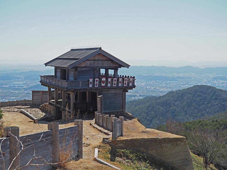 細い山道を3kmほど進むとたどりつく、標高400mの山頂にそびえる山城、鬼ノ城。思った以上に山奥でした。