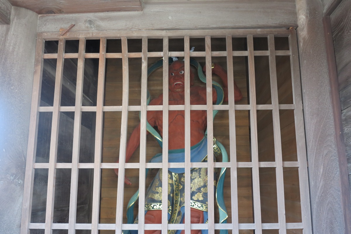 1626年、京仏師の清水源兵衛の作である金剛力士像は、水晶玉をはめ込まれた、ドキッとするほど大きな目が威圧的。瀬戸内市の指定重要文化財となっています。