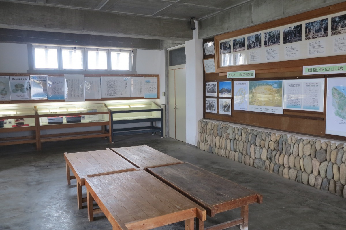 1985年の発掘調査の結果、土器や鉄製品など多くの生活用品や武具が出土。新たに建てられた城型展望台の1階ではそれらの遺物を展示しています。