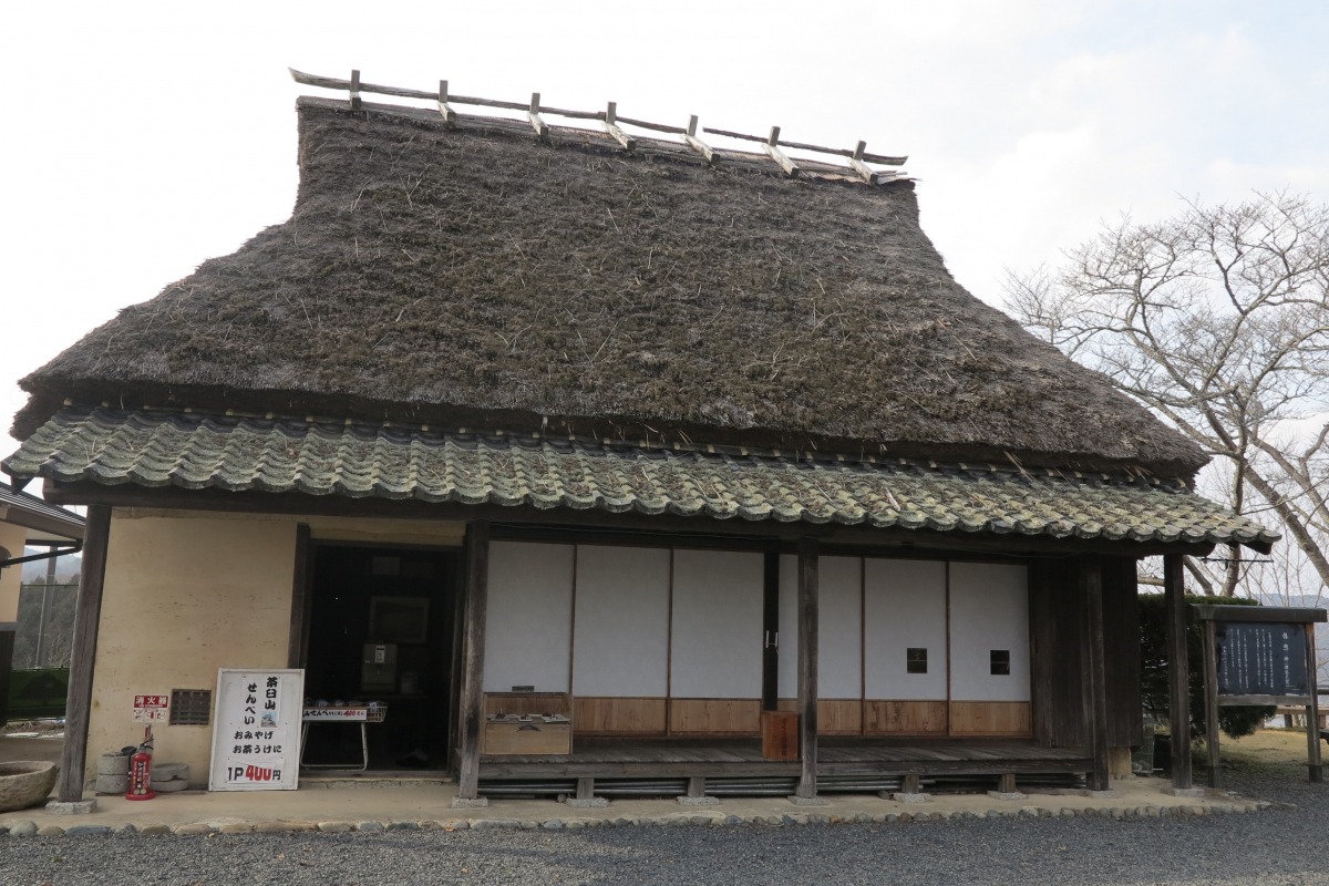 城型展望台を建築する際、一緒に移築されたのがこの建物。実際に吉井川流域で使われていた高瀬舟の舟宿を移築したものなんだとか。茅葺きの屋根が風情を感じさせます。