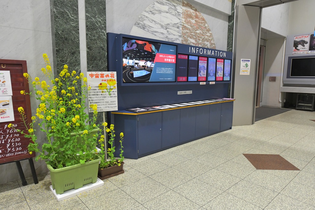 倉敷科学センターの入り口手前には、INFORMATION(上映作品情報の案内板)がありますので、ご確認ください。