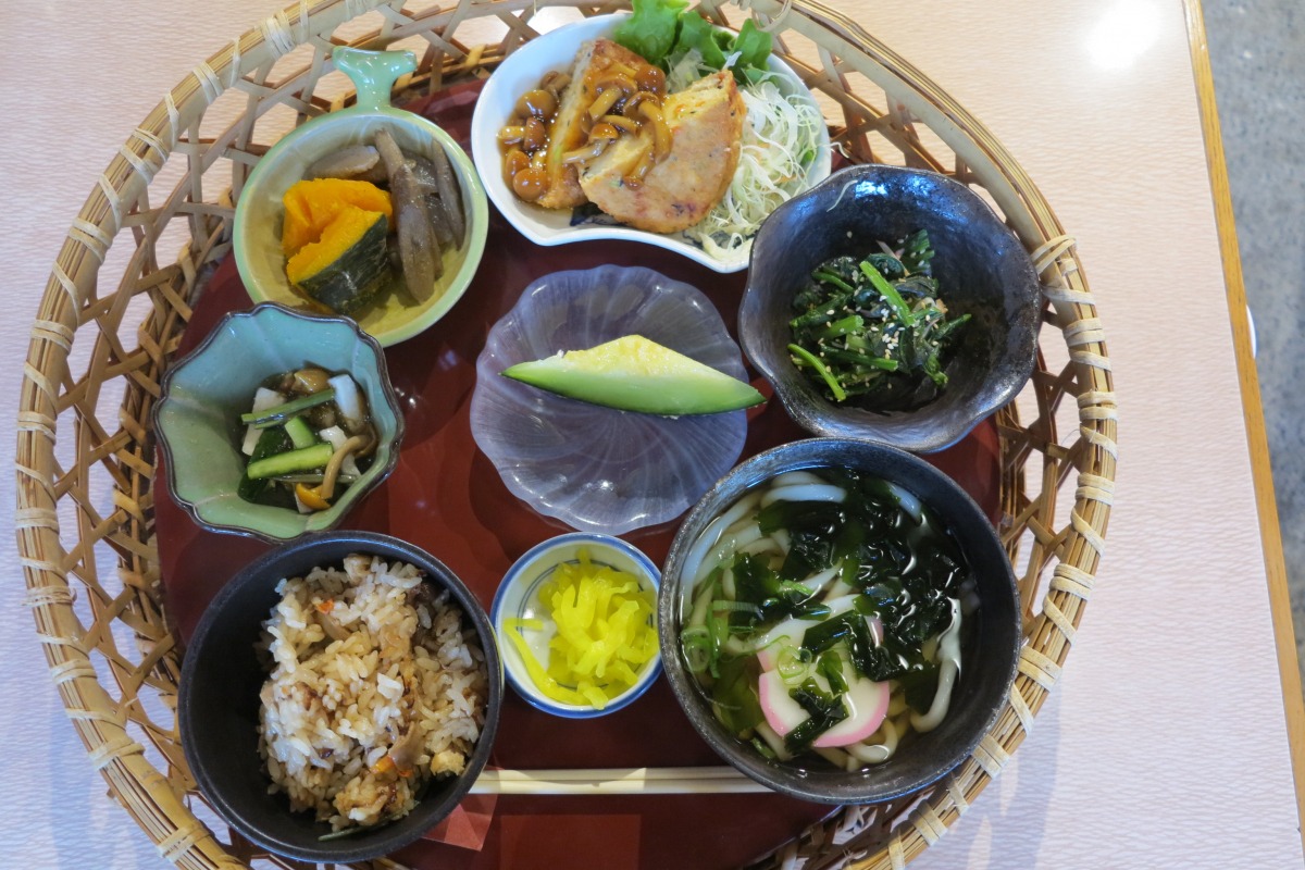 足守プラザの敷地内にあり、立地は抜群。さらに品数豊富でリーズナブルなお昼のセットメニューに驚き!こんなにいろんなおかずに、うどん、旬であれば足守名物のメロンまでいただけて930円なんて…。一品ひとしな、丁寧に作られた優しい味わいに幸せを感じます。他にもガッツリ系の料理、またカフェメニューも充実していますよ。