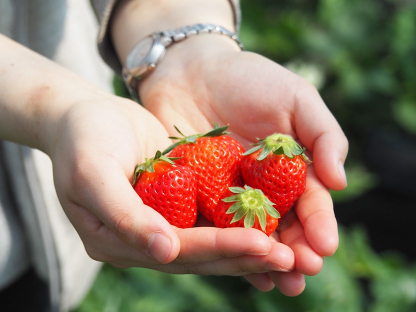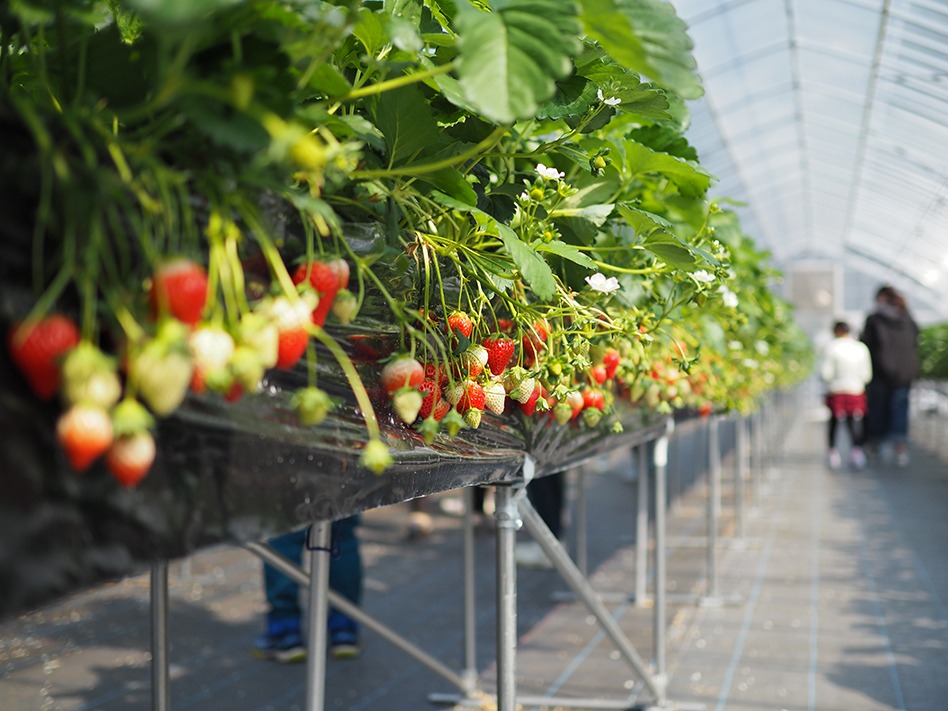 いちご狩りは2月上旬~5月上旬頃まで体験でき、なんと40分間、新鮮ないちごが食べ放題!(持ち帰りはなし)