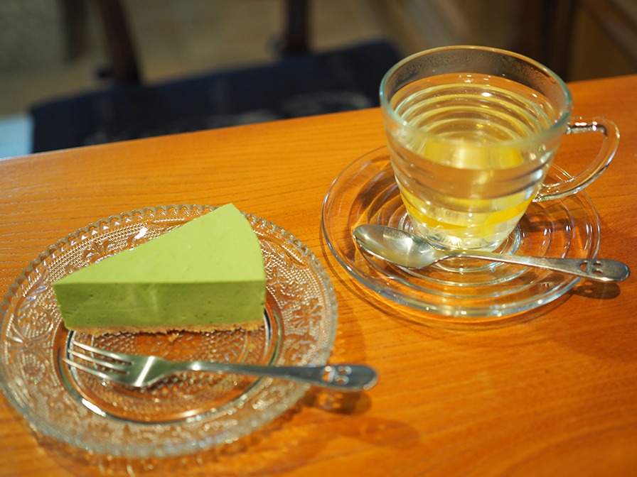 こちらは抹茶チーズケーキです。なめらかな食感がたまりません。その日によりケーキのメニューが変わります。