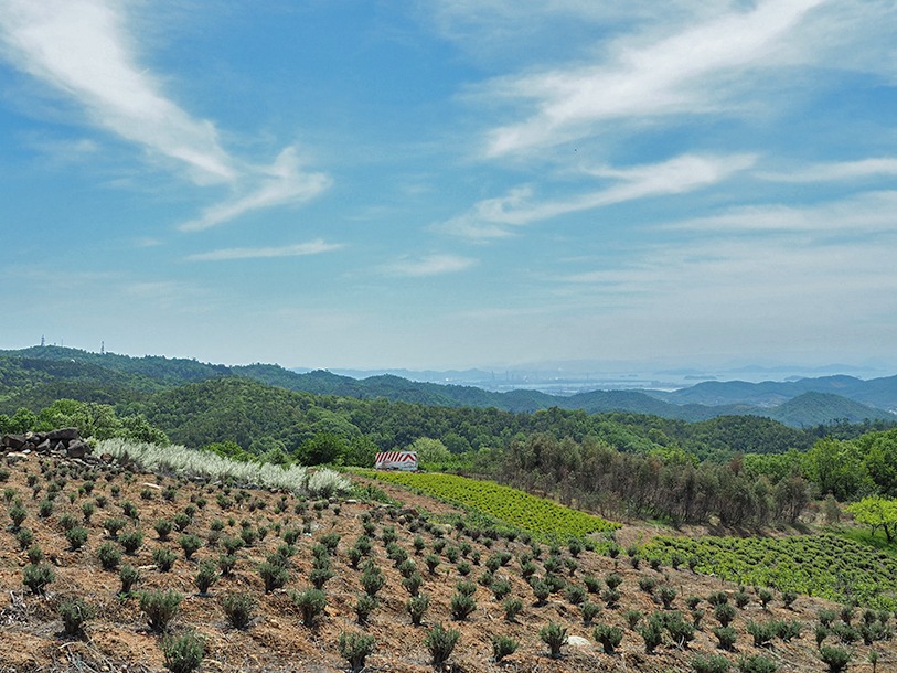 浅口市の北端に位置する阿部山(あべさん)は、まさに「知る人ぞ知る」絶景スポット。全国有数の切り枝の産地で、珍しい植物がたくさん栽培されていて、独特の風景が広がっています。
