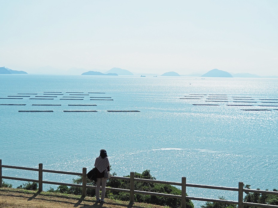 写真は秋に訪れたときに撮影しました。海に並んでいるのは牡蠣いかだです。