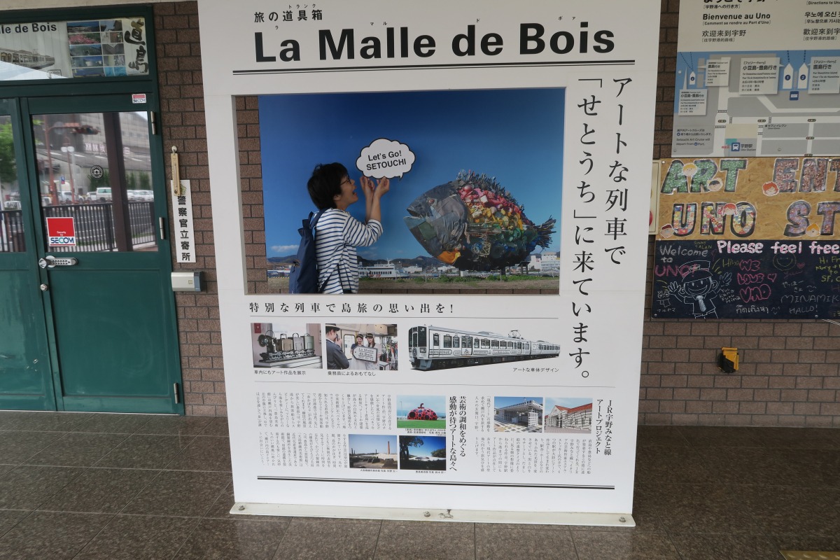 JR宇野駅ホームに設置されているパネルで、ぜひ記念の一枚を!