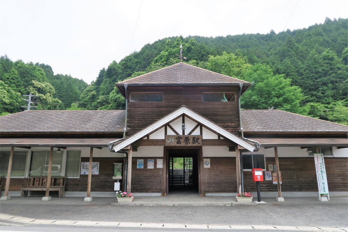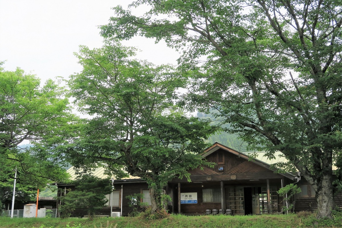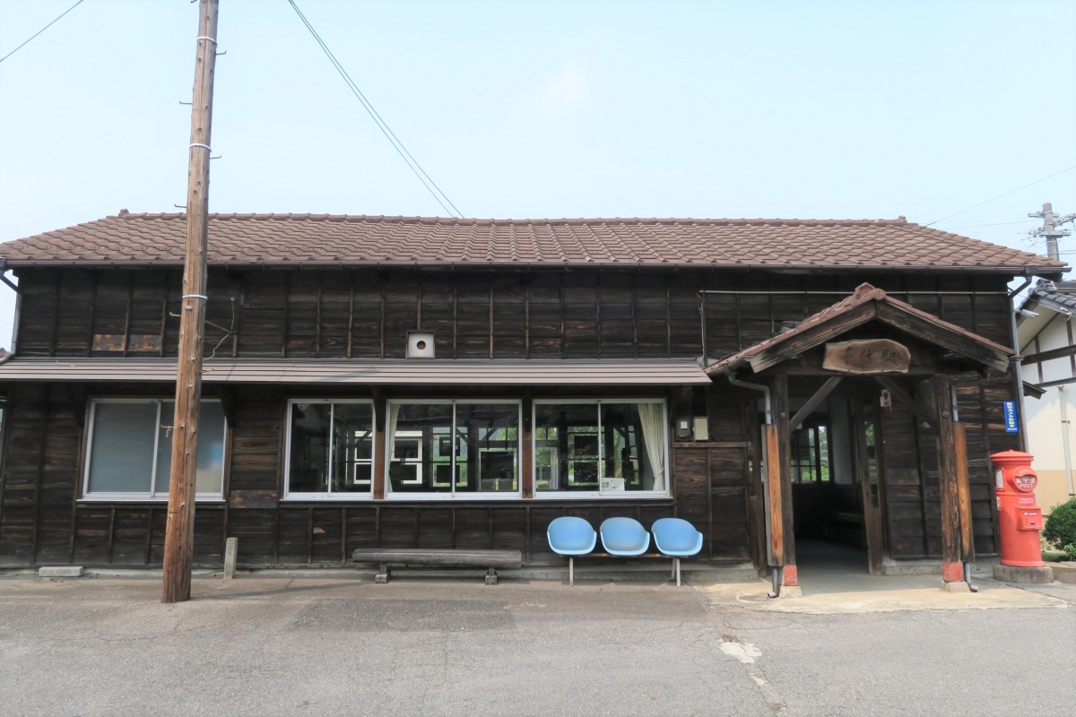 岡山県津山市から鳥取県鳥取市を結ぶ因美線にも、木造駅舎が残っています。