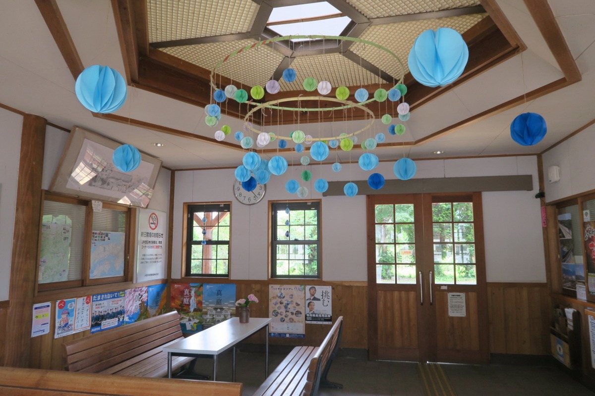 ログハウス風な駅舎。構内にあるノートには、立ち寄った人々の思い出が綴られています。バイクや自転車・ドライブなどで訪れる方もたくさんいらっしゃるようです。