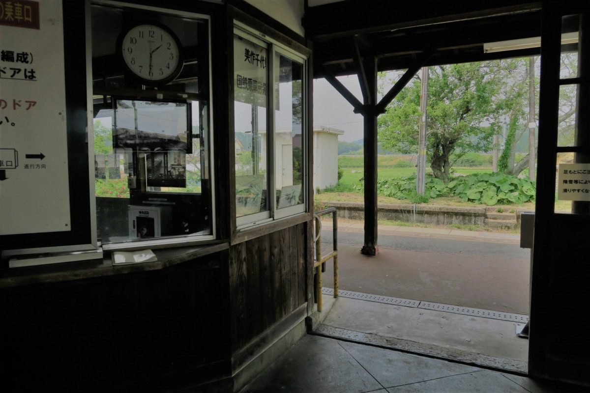 開業したのは1929(昭和4)年。現在もきれいに保存されており、窓も昔ながらの木枠が使われています。当時の雰囲気をそのまま感じることができる貴重な駅舎です。