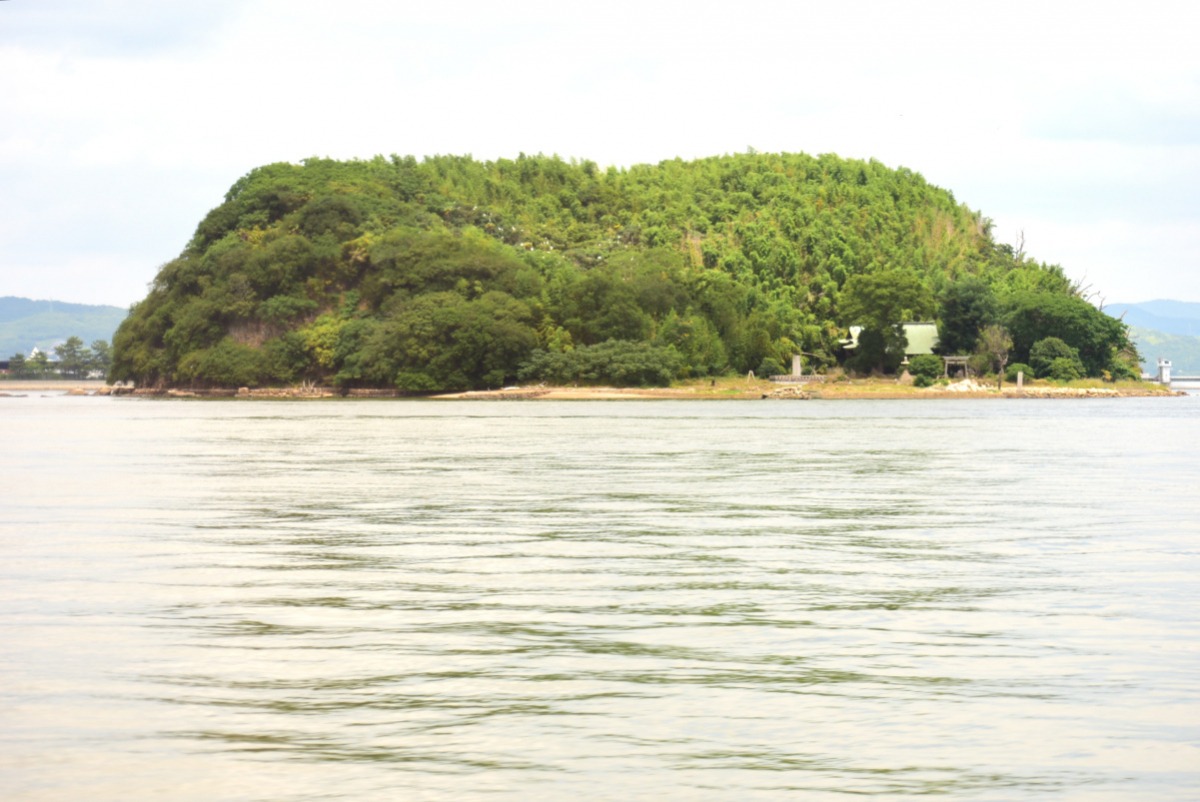 岡山港付近ではぜひ左にご注目を!ぷかりと浮かんだ無人島にたたずむ拝殿は古事記にも記されている高島神社。チャーター船で渡らないと見ることの出来ない貴重すぎる海上のお参りスポットです!