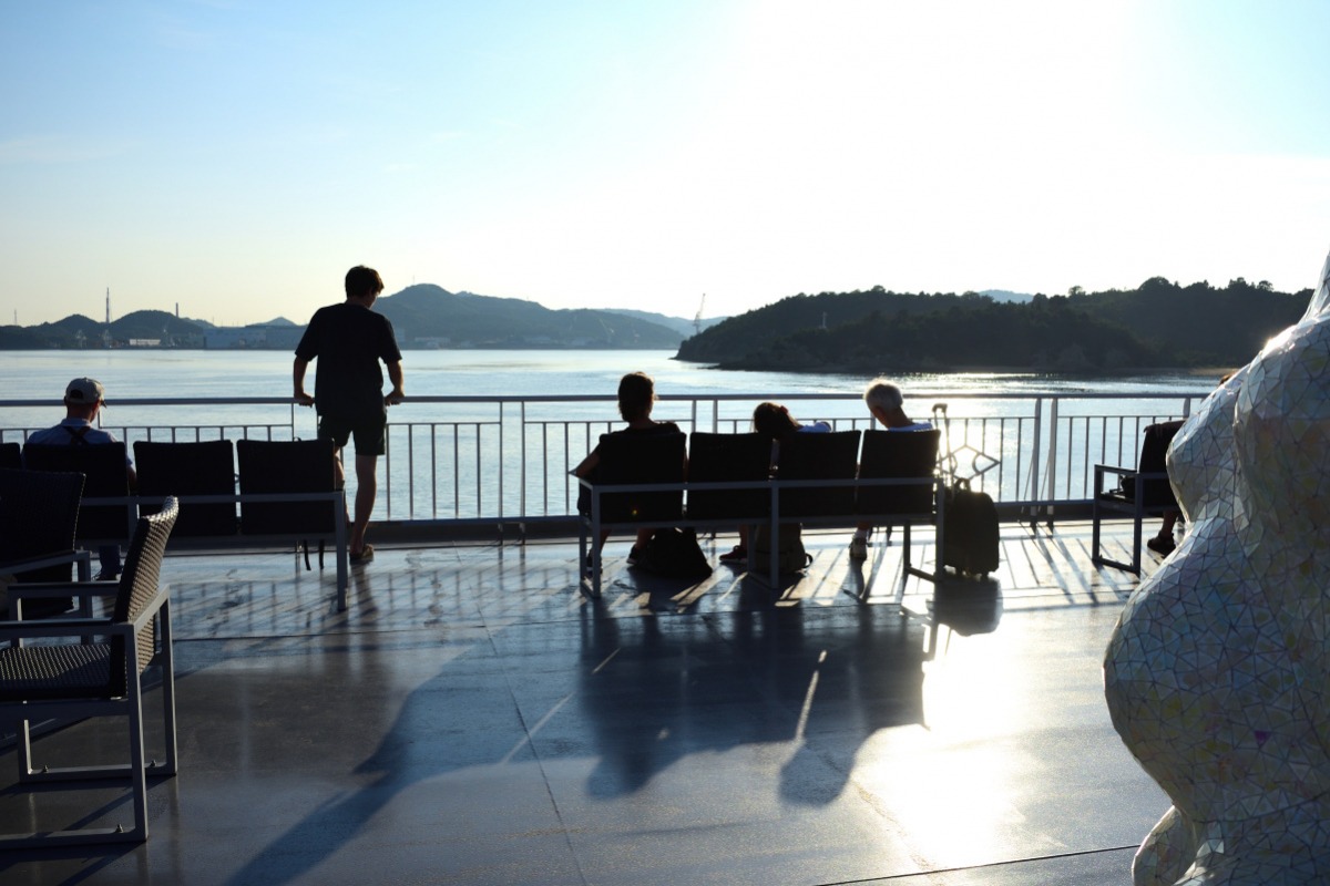 大型フェリー・なおしまの3階デッキで風を浴びながら、旅の余韻にひたりましょう。キラキラ眩しい海を眺めているうちに、あっという間にGOAL宇野港へ到着です!それぞれの島を楽しみながら瀬戸芸3島、巡れちゃいますよ!