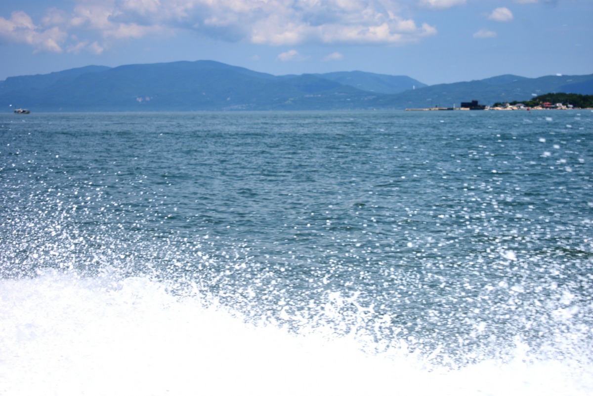 そしてお待ちかね瀬戸内ブルーのきらめく世界へ!赤い灯台、水門に釣り船。デッキで波音を聴いたり、無心でカメラのシャッターを切ったり。海・空・山の刻々と移りかわる景色にみんなが見とれる時間です。