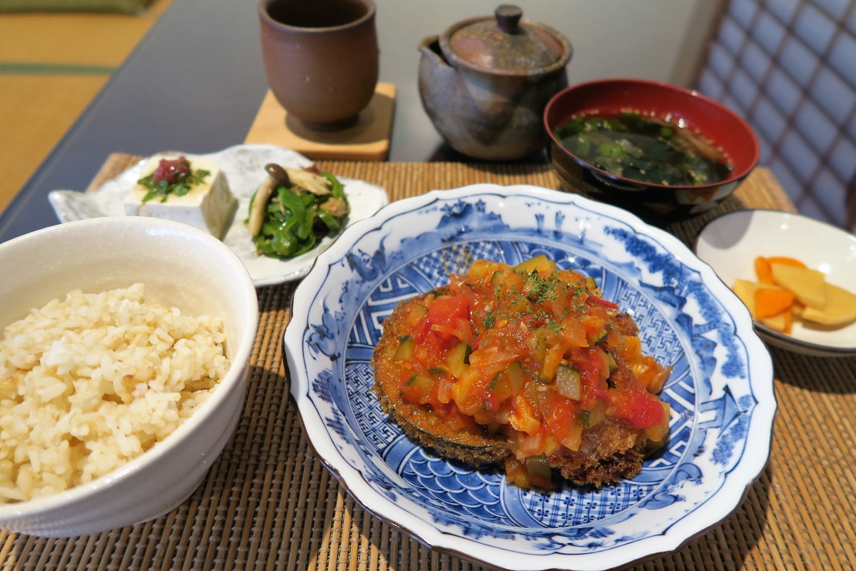 この日いただいたのは日替わり定食「白身魚と丸ナスのフライ」熱々ホクホクをどうぞ♪
