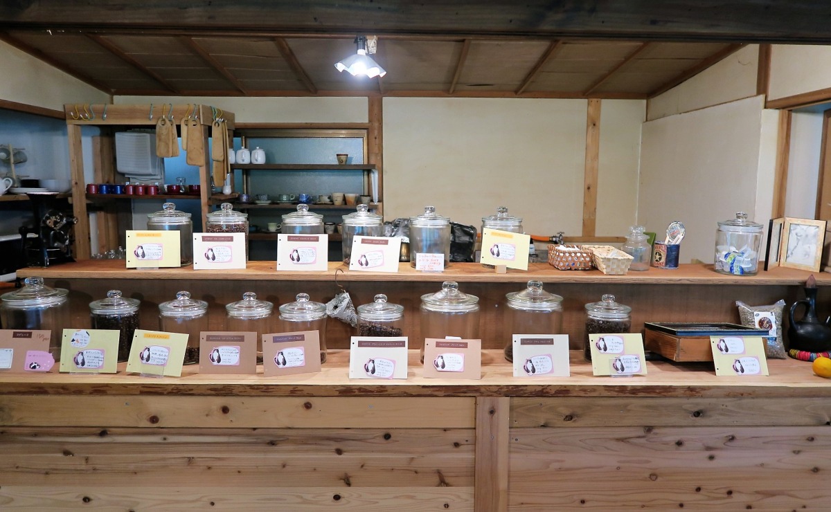 コーヒー好きな人と‘つれのーて(一緒に)’来てもらいたいと、高梁市吹屋地区から今の店舗に移転オープンしました。店内は店長自ら改装を加え、家具類も手作り!