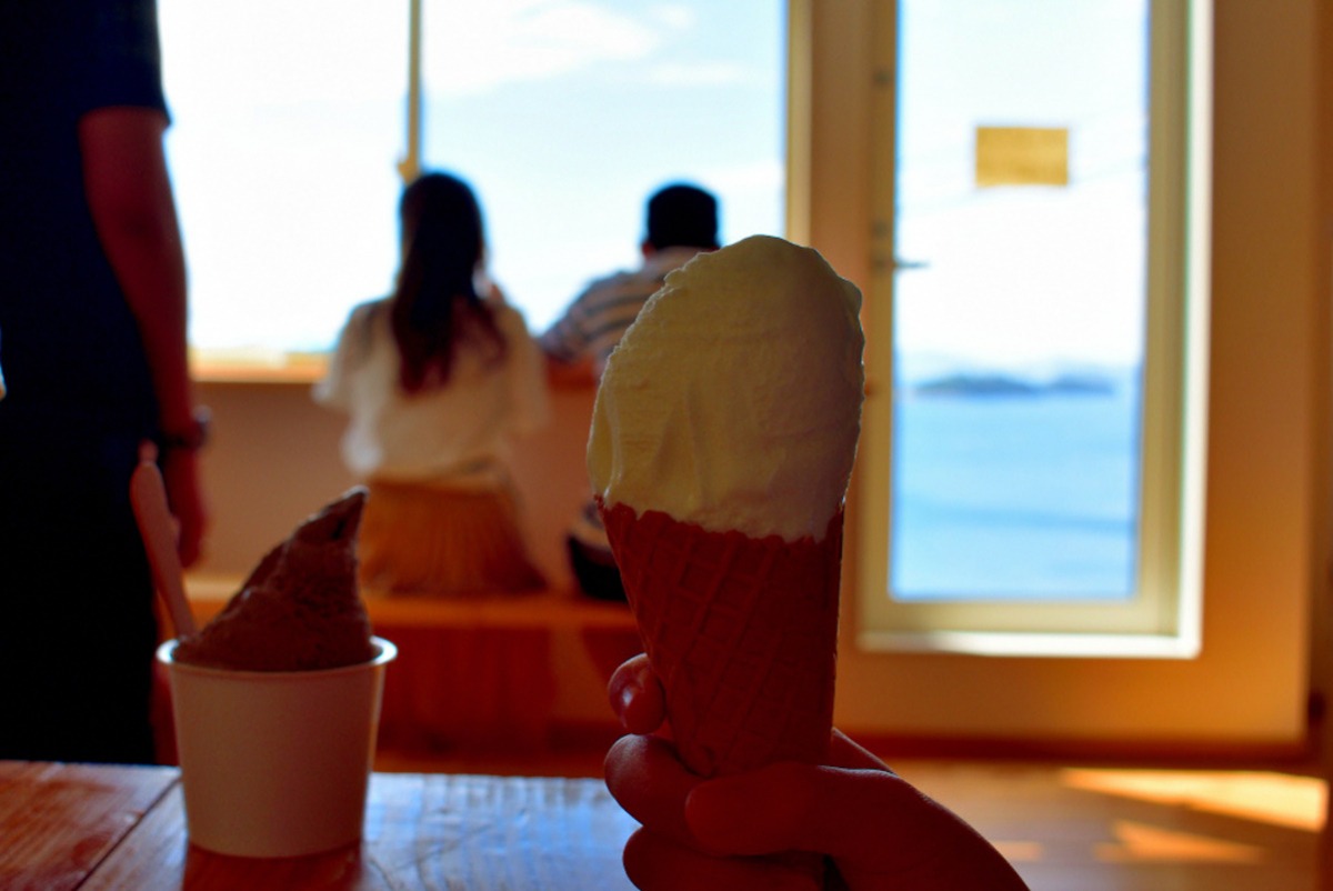 下津井と言えば漁港!いえいえなんと牧場もあるんです!地元産の季節のフルーツに新鮮な生乳。自然いっぱい旬いっぱいの美味しさですよ。瀬戸内海をながめながら牧場直営のジェラートがいただけるとあって休日は混雑必死。1番人気のミルク、果肉たっぷりのぶどう、まるでカカオのような香ばしさのほうじ茶。ああ選べません。