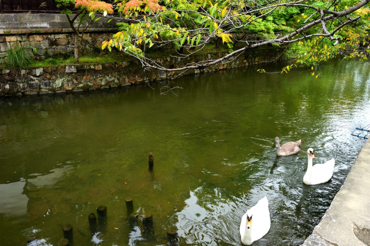兵庫生まれ倉敷川育ちのコブハクチョウ「ユメ」と「ソラ」。かわいい2羽が美観地区の入り口で、いつも仲良くお出迎えしてくれています。水面をパクパクしたり、羽繕いしたり。エサの時間にはコイやハトまで集まって、見飽きることがありません。