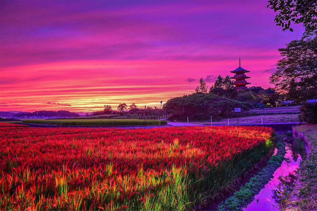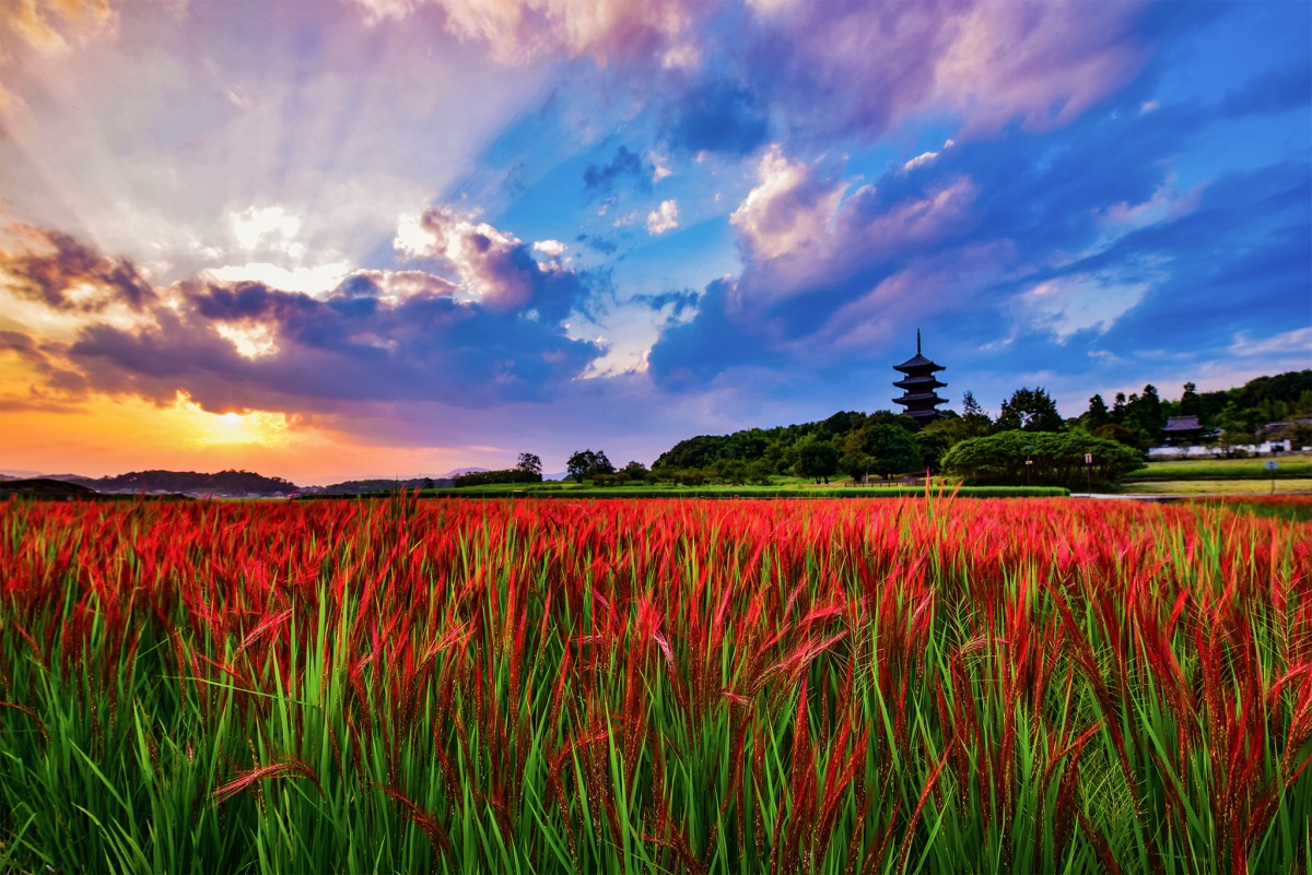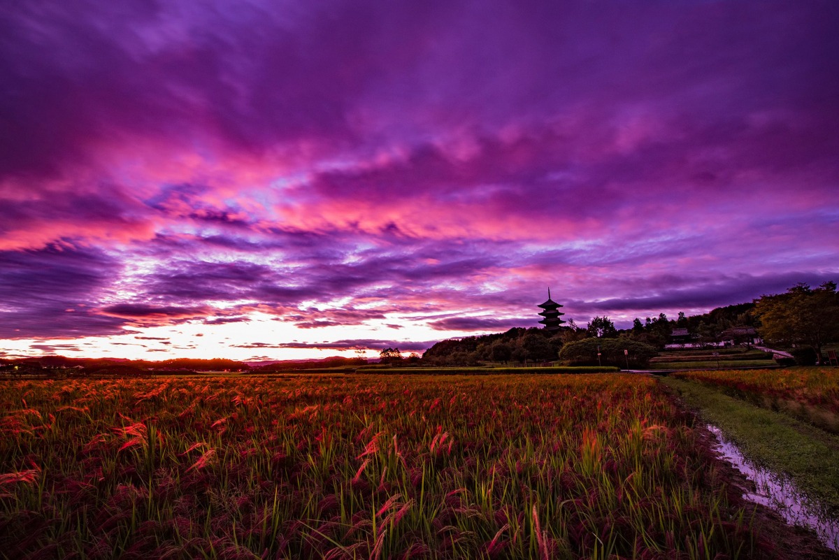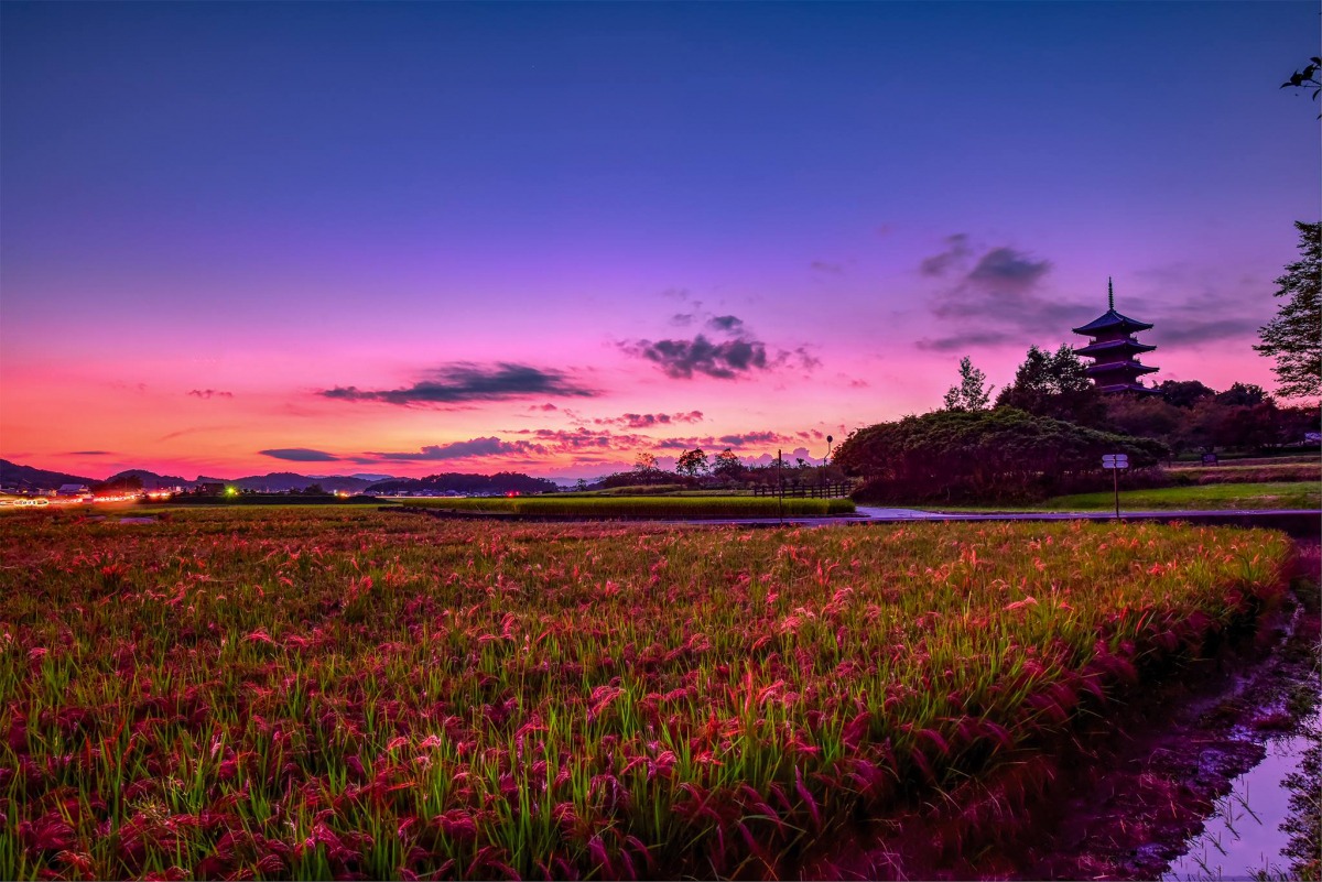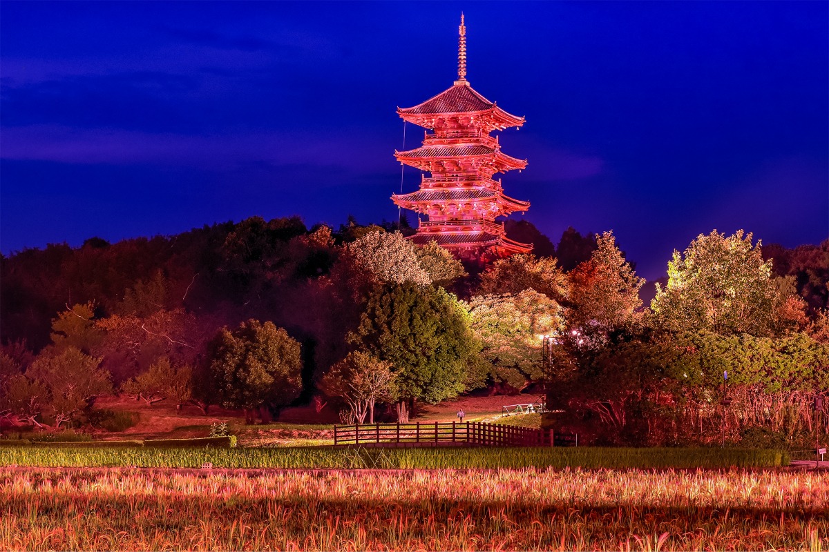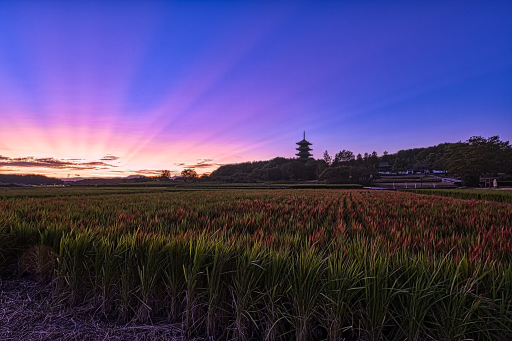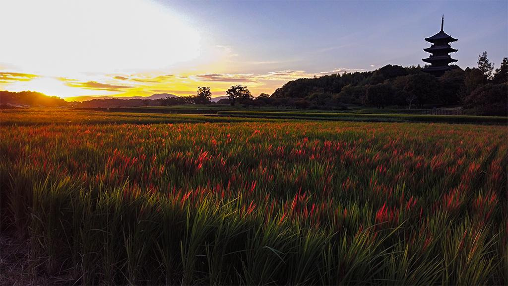 見ておくべき絶景!幻想的な備中国分寺と赤米風景