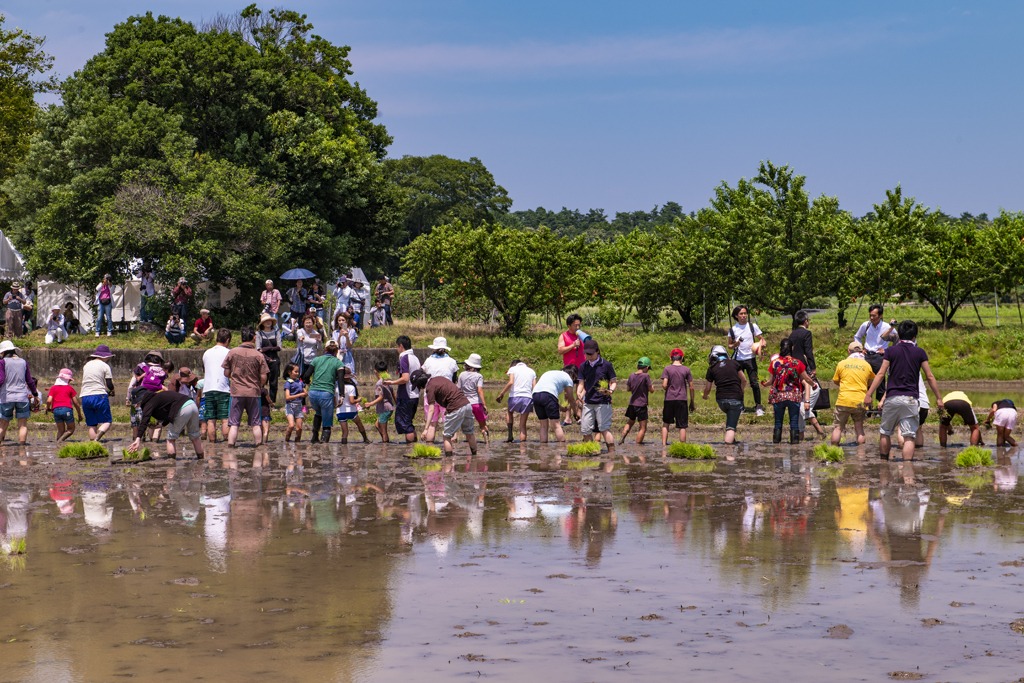 毎年6月に、総社市在住のお子様約100名が参加する「赤米田植え体験」が開催されます。