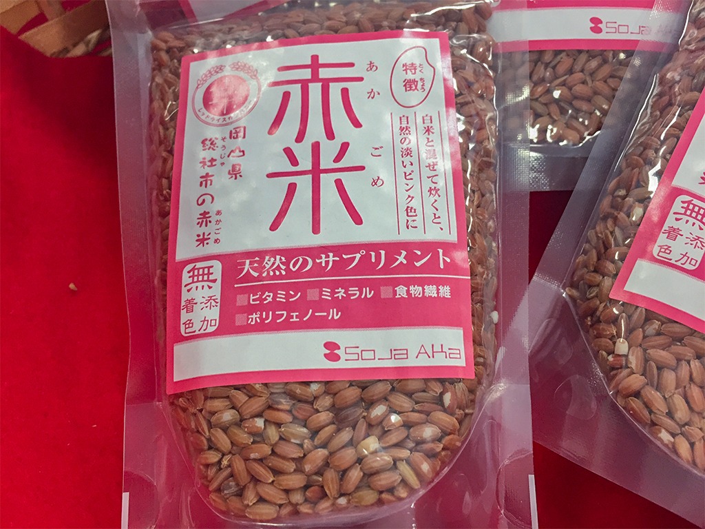 収穫後、しばらくして、備中国分寺の田んぼで育った赤米は、赤米製品になります。