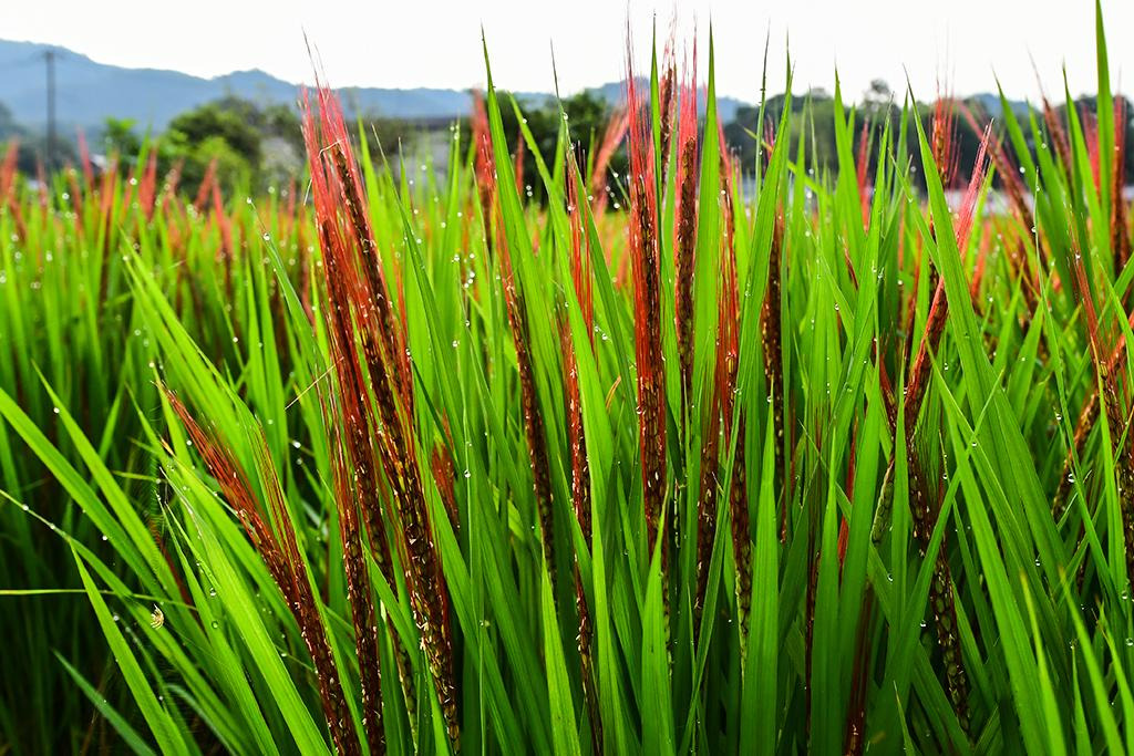 赤米の赤い稲穂が風に吹かれて揺れる風景は、美しいものです。波のように押し寄せる風で赤米が揺れて、「風が見える!」ような気がします。