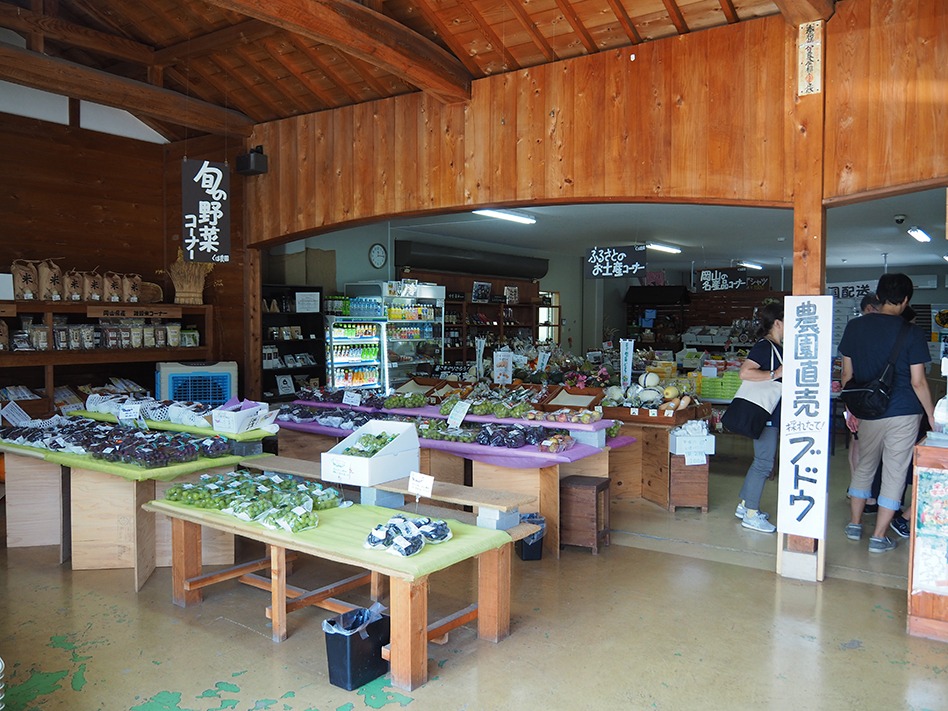 直売所では、ぶどうをはじめ、果物や野菜がずらりとお得な価格で並んでいました。加工品やお菓子の品ぞろえも豊富で、お土産を選ぶのにぴったりです。