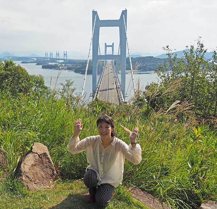 鷲羽山レストハウスから鷲羽山ビジターセンターまでの道は、瀬戸大橋を眺めながら歩けます。記念撮影も、し放題!