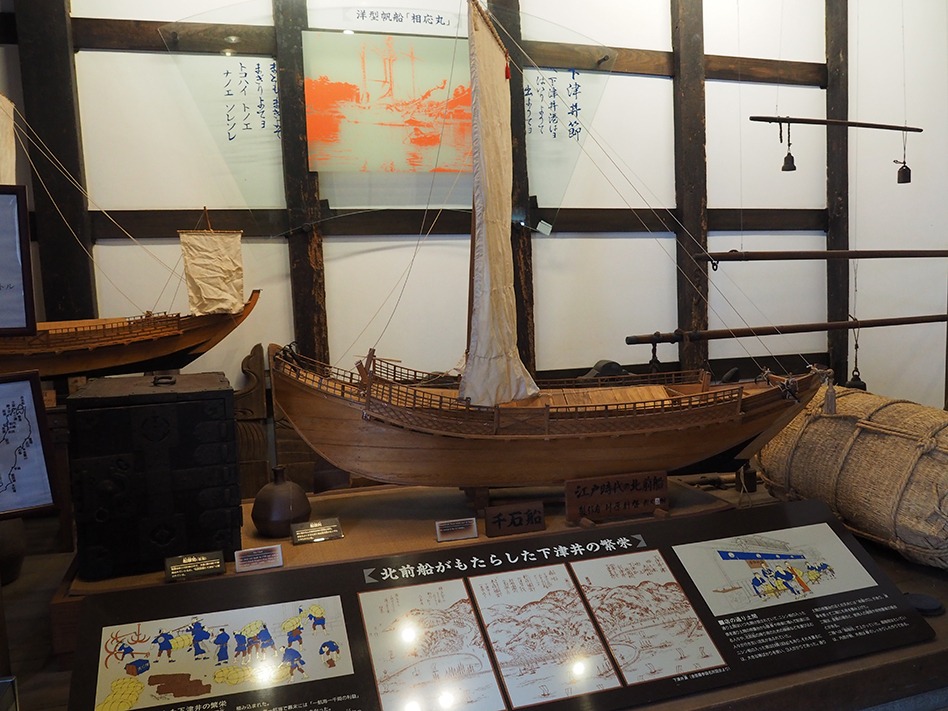 下津井に来たらぜひ立ち寄ってほしい、むかし下津井回船問屋。明治時代の回船問屋を復元した建物で、下津井漁港の歴史や、昔の暮らしを知ることができます。昔は北前船の寄港地で、北海道から運ばれたたくさんのニシン粕(肥料)をおろし、たいそう賑わっていたそうです。
